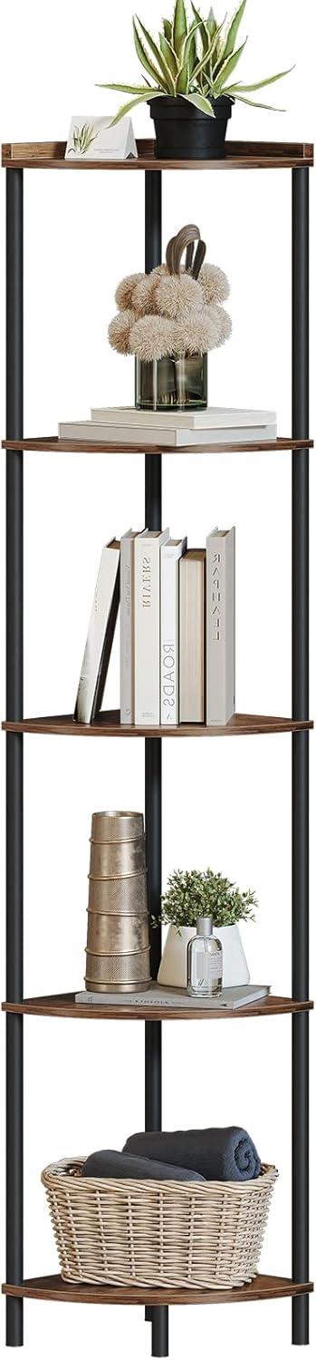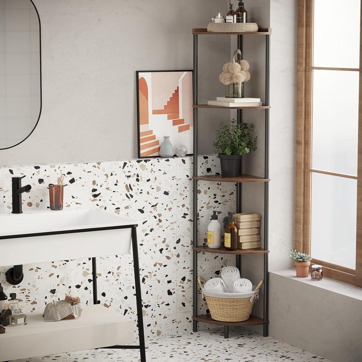 【Urban Industrial and Fashionable Design】: The classic combination of rustic brown and black of the 5-tier corner standing shelf combines the charm of classical and modern furniture styles, showing a sense of luxury in a low-key manner. Unique wood grain finishes collide with metallic elements for an industrial feel, creating a calm and fresh vibe in your room that easily blends into any decor. The perfect combination of decorative and functional uses.