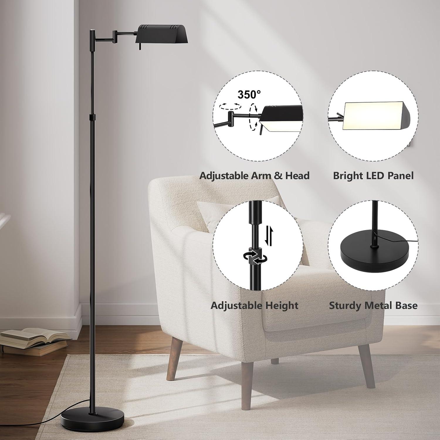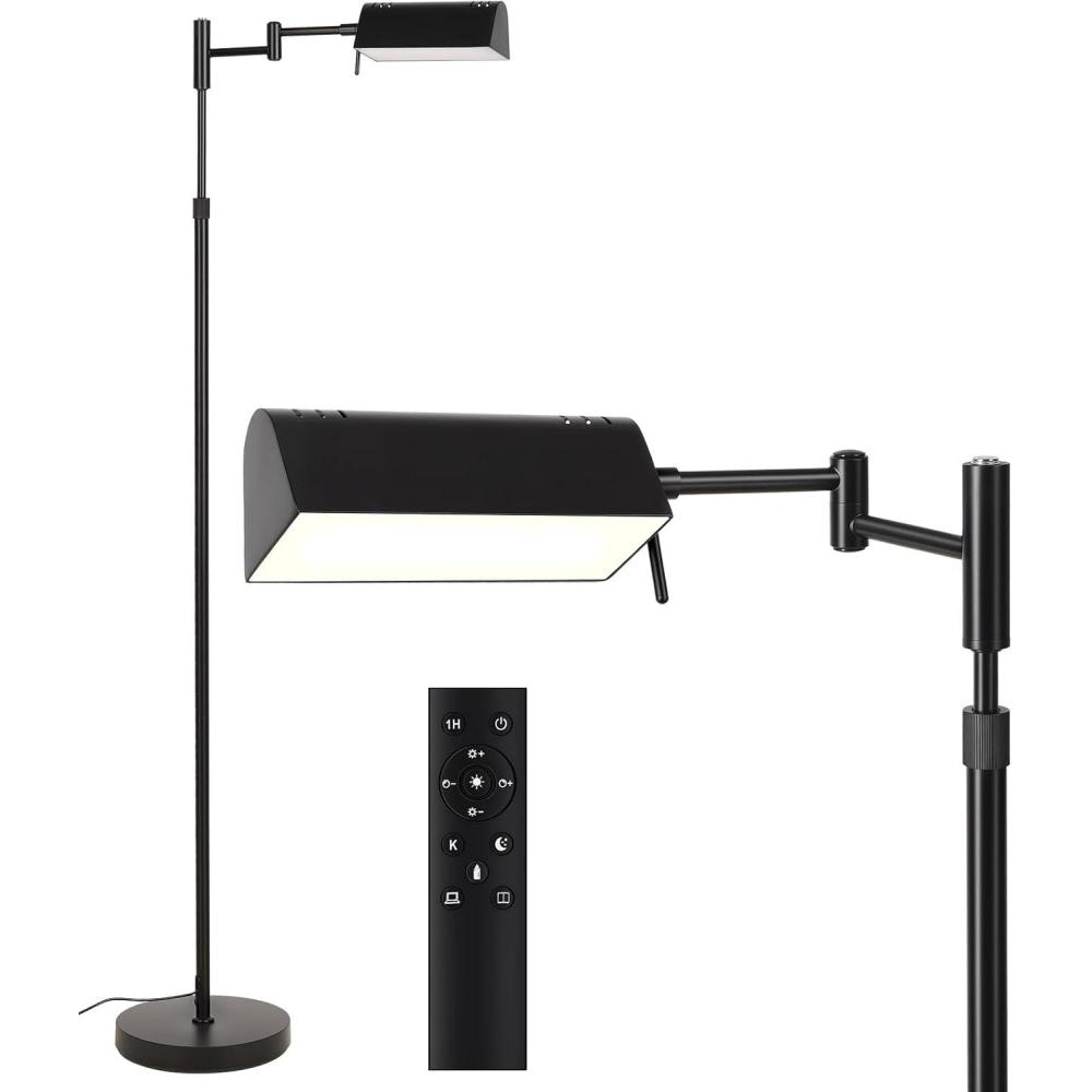 Two Control Methods: Adjust the bright reading lamp easily via smart touch control or remote (range up to 33ft/10m). The remote includes a 1-hour timer, 4 preset scene modes (reading, baby-feeding, working, night light) to meet your various scene needs. This swing floor lamp also features a memory function to remember your last lighting settings. For added convenience, the magnetic remote attaches to the lamp pole for easy storage and loss prevention.